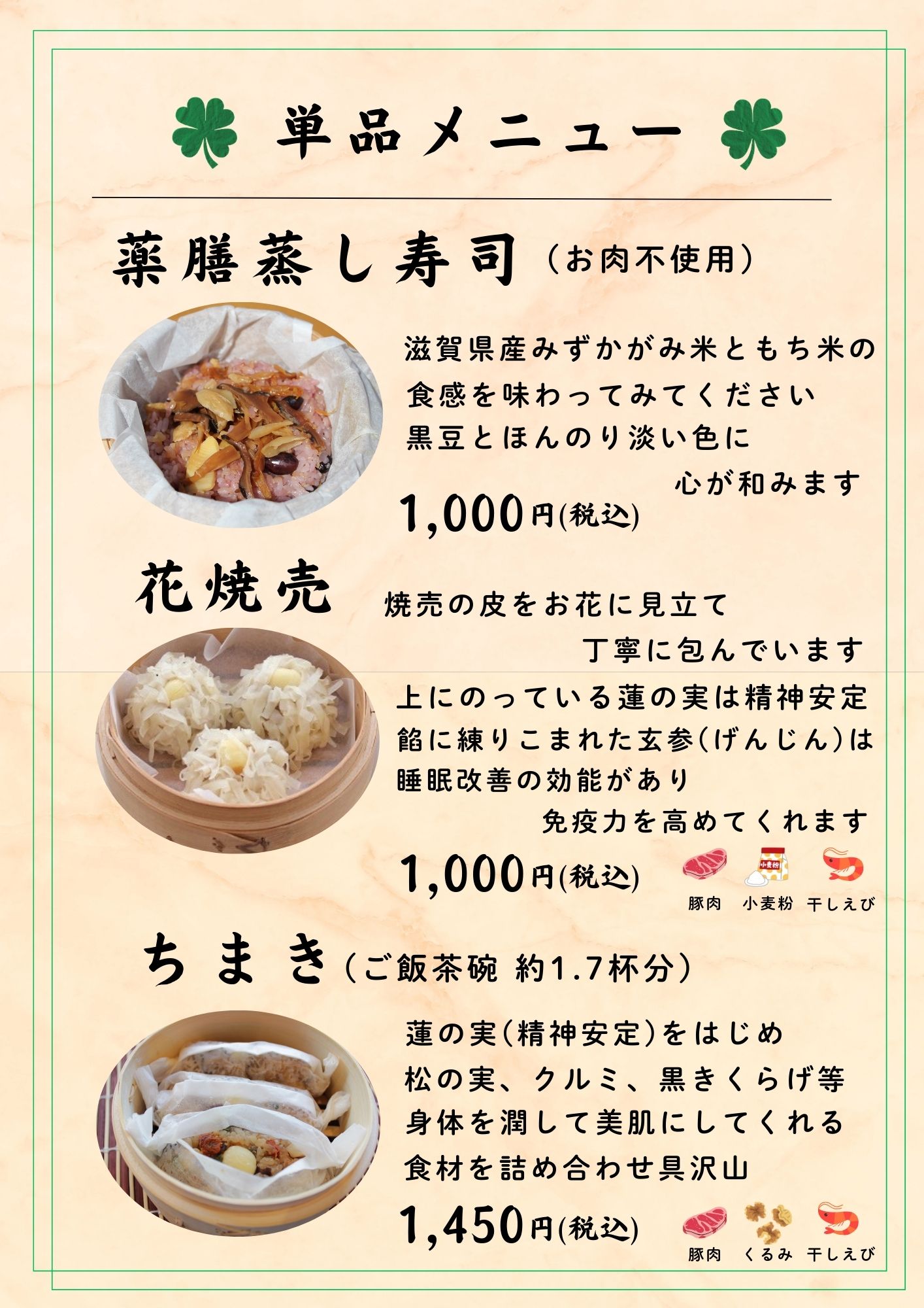 中国茶メニュー